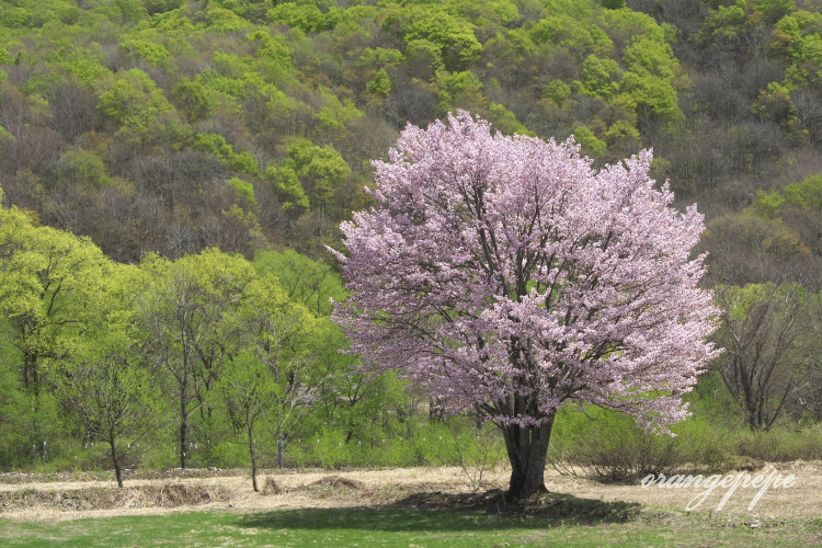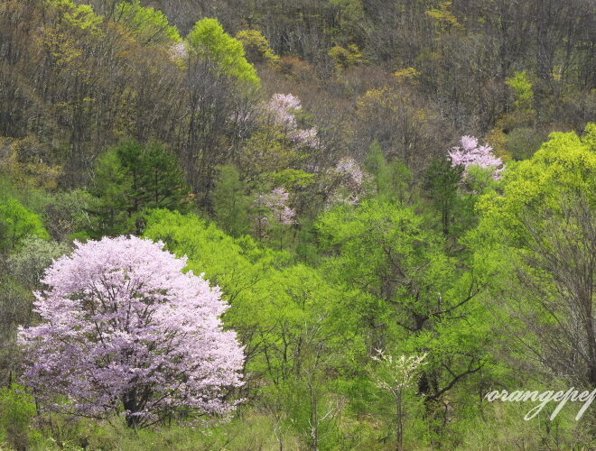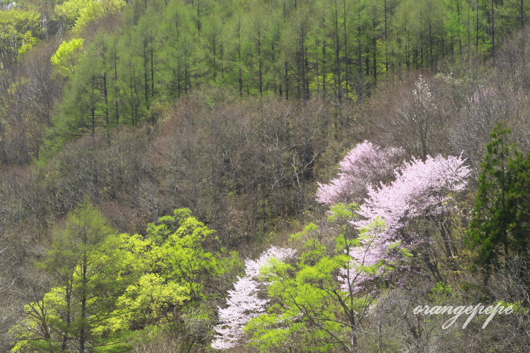 山桜があちこちで咲いています。ここのところ暑かったので、日に日に緑も広がって裏磐梯らしい「新緑と山桜」の風景が見られています。今日は桧原の一本桜が満開。祭日でしたが車も少なく、ゆっくり眺める事ができました。GW後半には終わってしまいそうですね。お早目に~