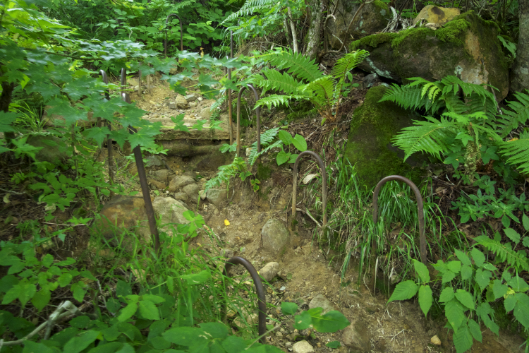 ここで以前に何度か道を間違えそうになったのですが、看板が新しくなってマークも増え、安心して急登コースへ行けました。いよいよ急登です。